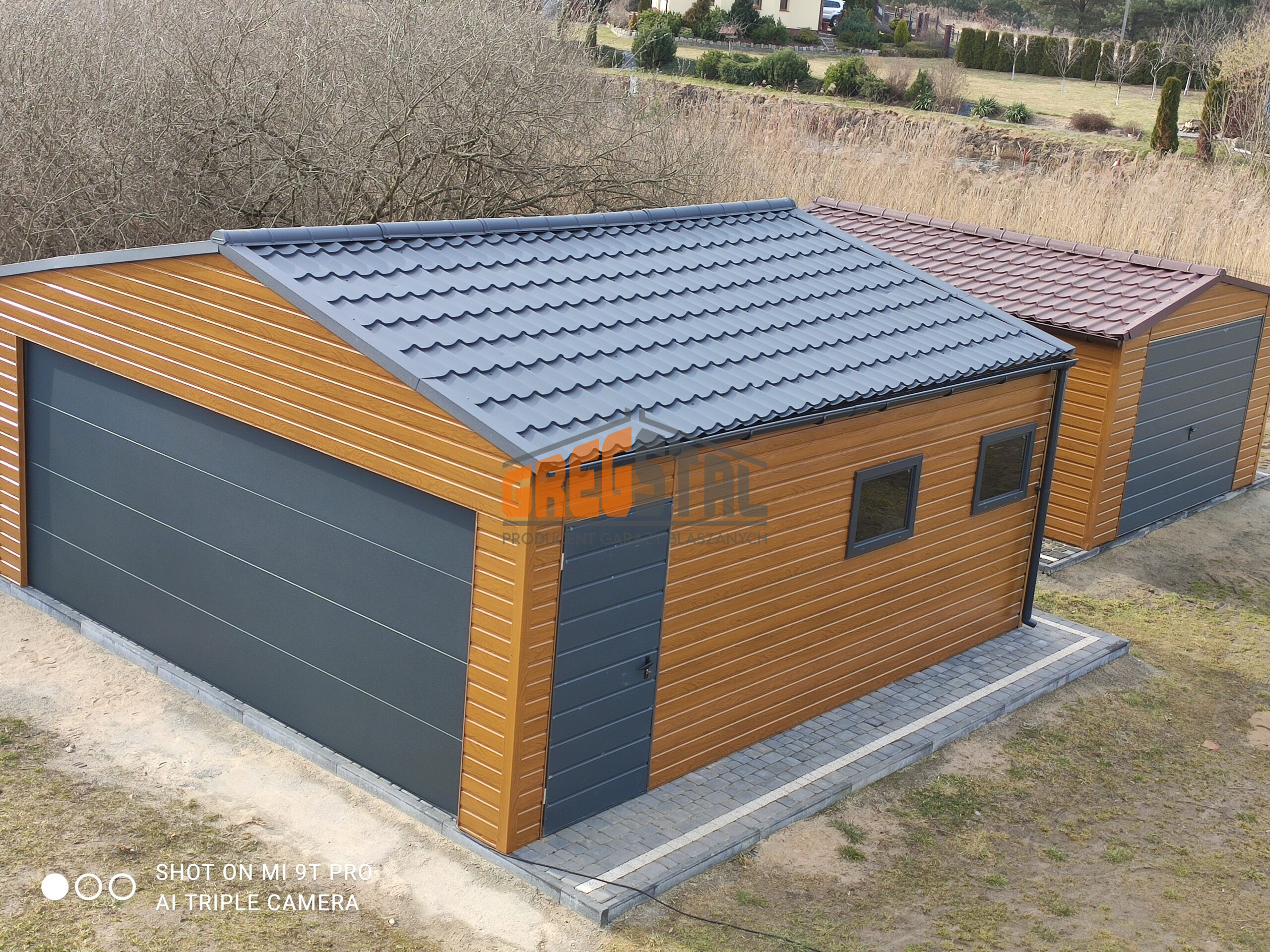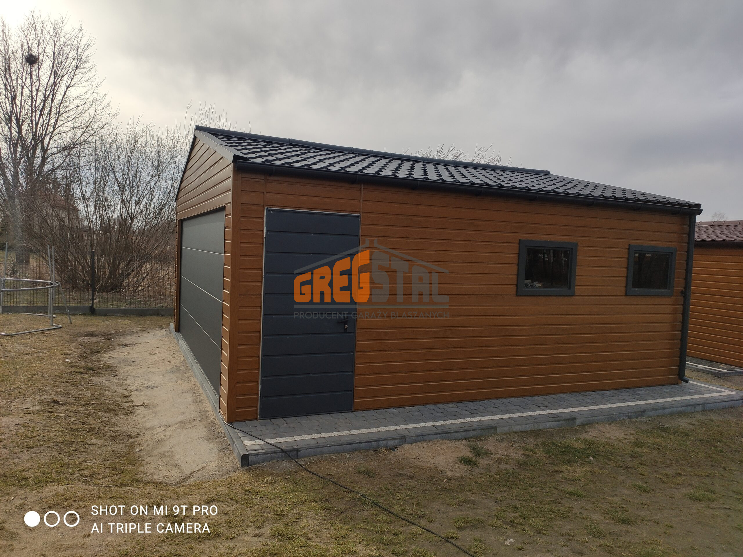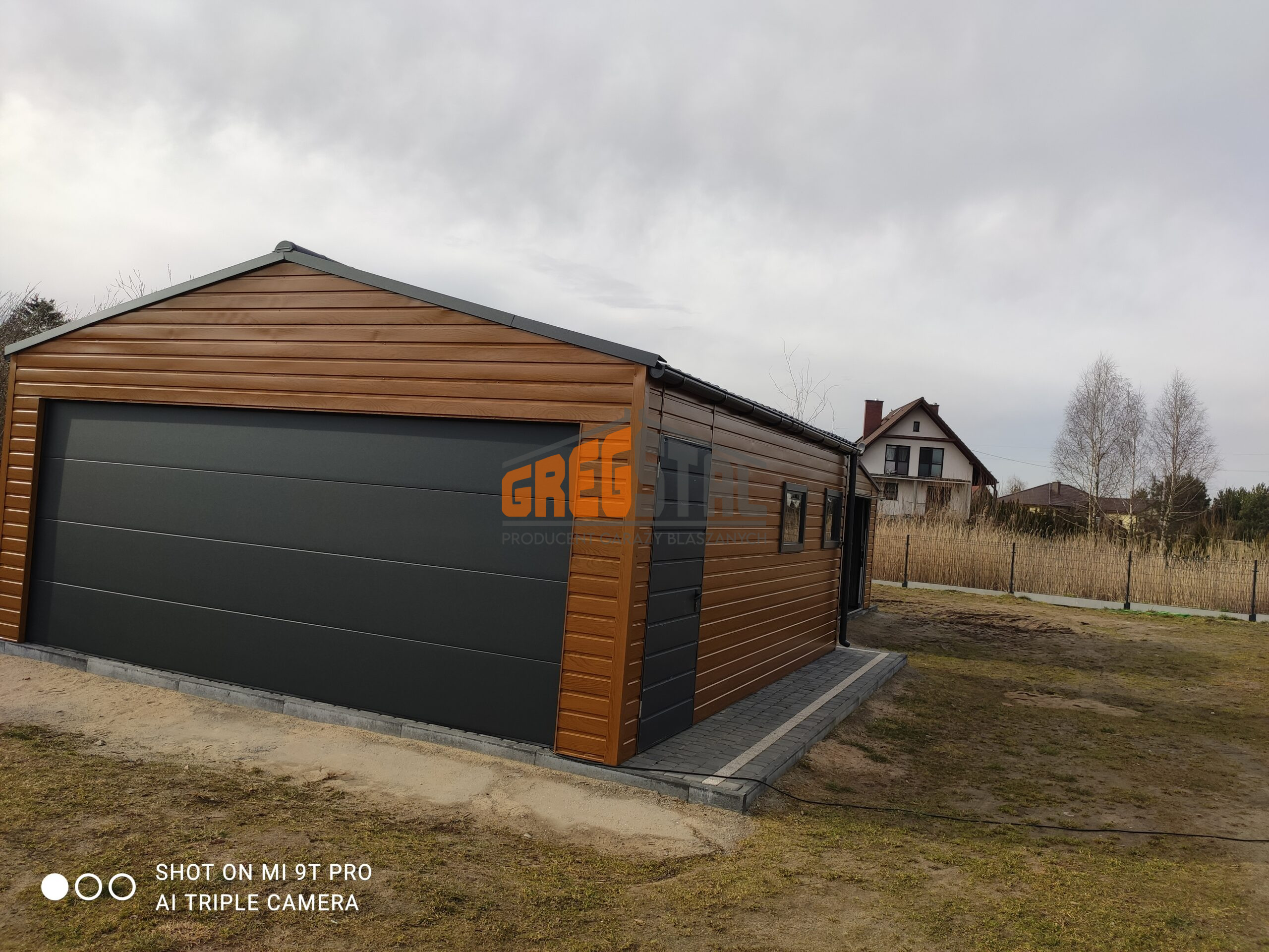 GARAŻ BLASZANY Z BRAMĄ SEGMENTOWĄ 6m X 6m